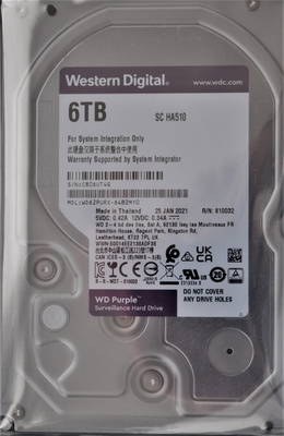 Жесткий диск WD Purple Surveillance 6TB WD62PURX Тип накопителя HDD , Объём 6 ТБ , Форм-фактор 3 .5 , Интерфейс SATA 3 .0 (6Gbps) , Скорость вращения шпинделя 5 640 об/мин , Буфер 128 МБ , Уровень шума в режиме ожидания 25 дБ