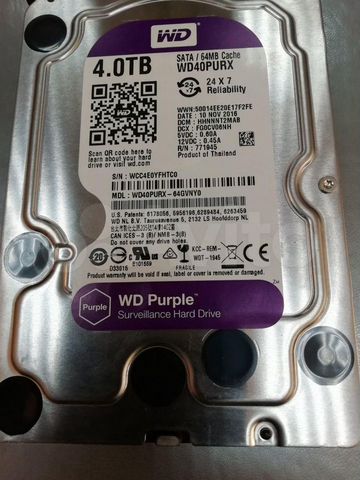 Жесткий диск Western Digital WD Purple 4 TB ( WD40PURX ) для систем видеонаблюдения; объем 4000 ГБ; форм-фактор 3 .5″ интерфейс SATA 6Gb/s; Страна производитель Россия-Китай . Товар Сертифицирован в Казахстане .