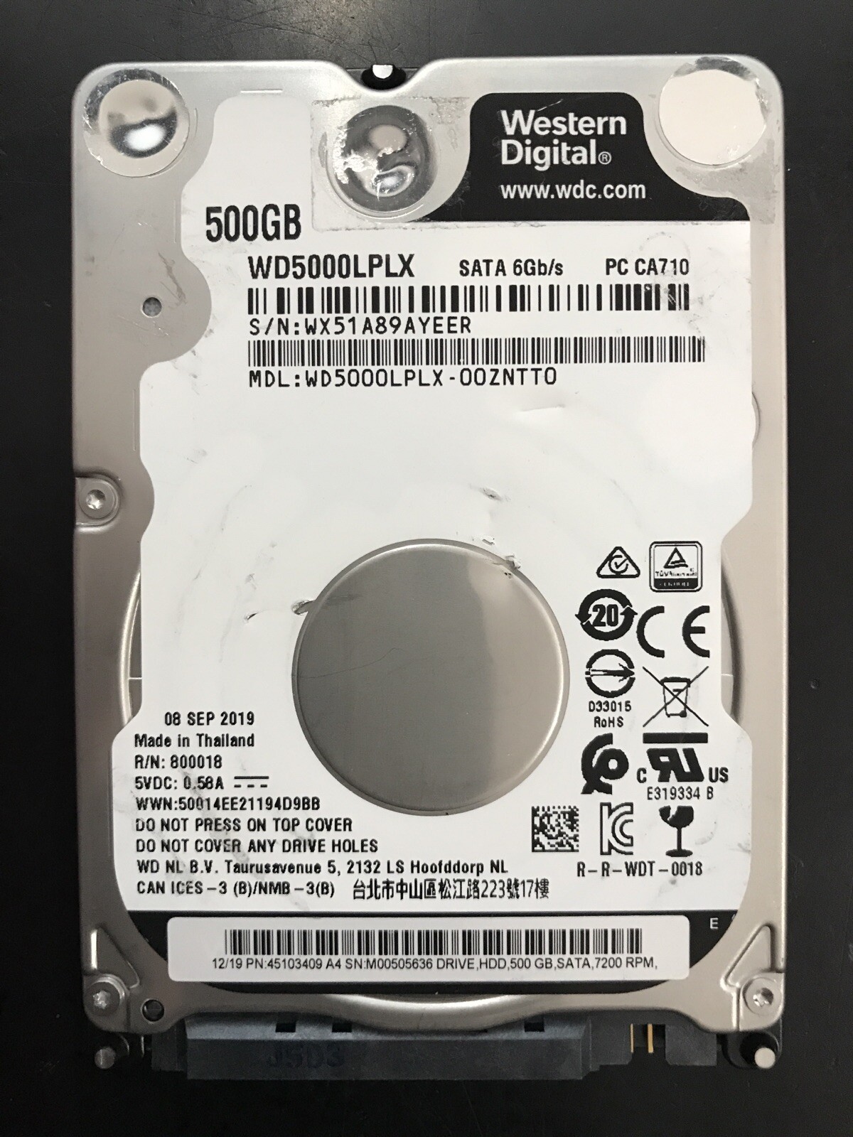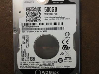 Western Digital Black 500 Гб ( WD5000LPLX ) — 500 Гб HDD для массового применения 2 .5" (толщиной 7 мм) SATA 6Gb / s (SATA-III) 7200 оборотов / мин . Буфер: 32 Мб