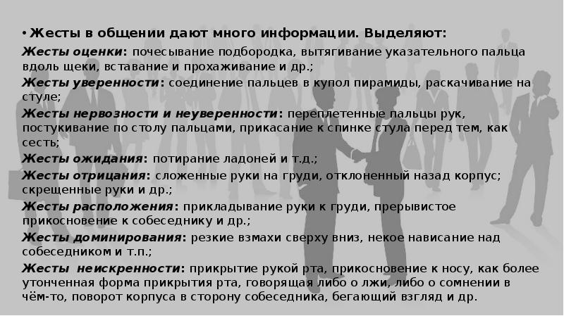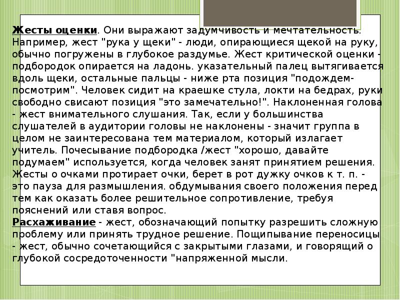 Жесты выражающие оценку