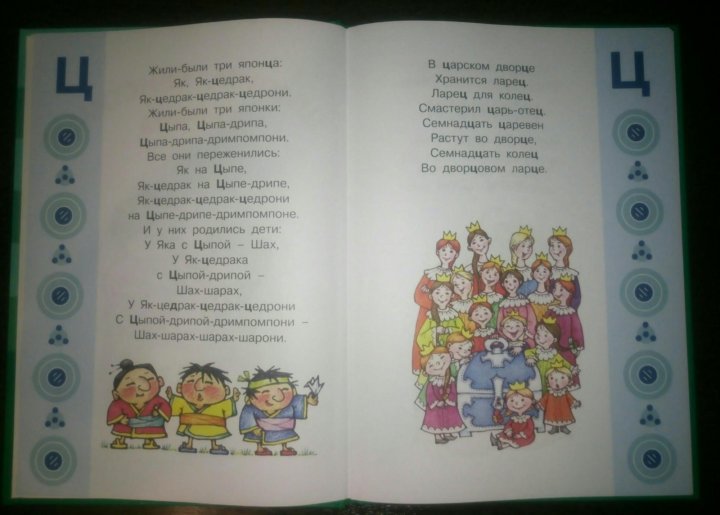 Жили-были три японца: Як, Як-Цин-Драк, Як-Цин-Драк-Циндрони . Жили-были три японки: Циби, Циби-Дриби, Циби-Дриби-Дримпомпони .