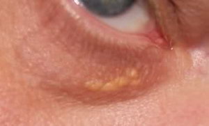 Жировики под глазами . Разновидности новообразований, причины возникновения . Способы устранения: медикаментозное лечение, методы народной терапии, хирургия . . . . фото которого располагается . . .