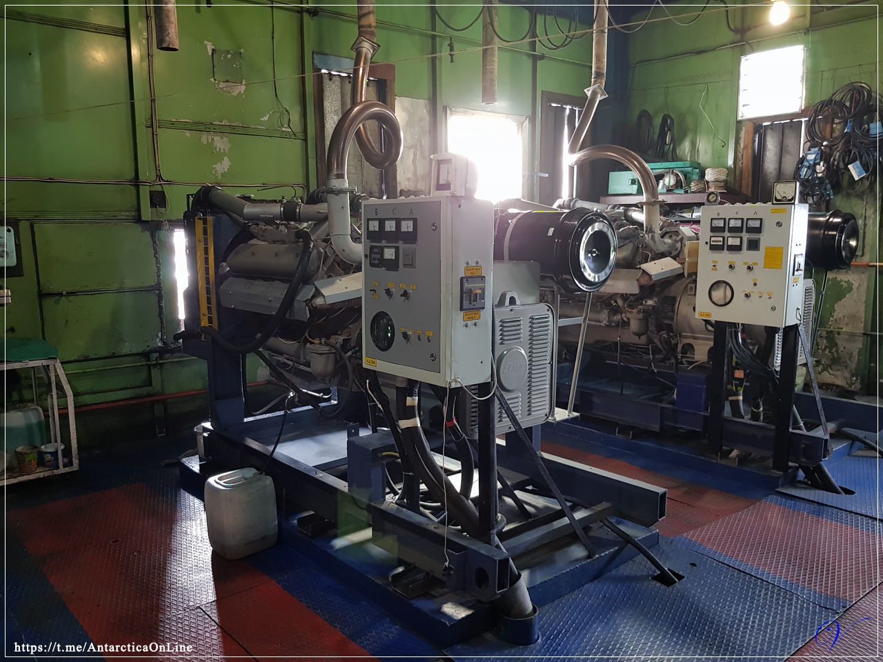 Дизельная электростанция — это сердце станции, которое обеспечивает всю станцию энергией. Это примерно 140 КВт на освещение, обогрев и работу оборудования. Ранее на станции было паровое отопление, но со временем пришли к выводу, что паровое отопление не самое лучшее решение в полярных условиях и перешли на обогрев электрическими обогревателями.