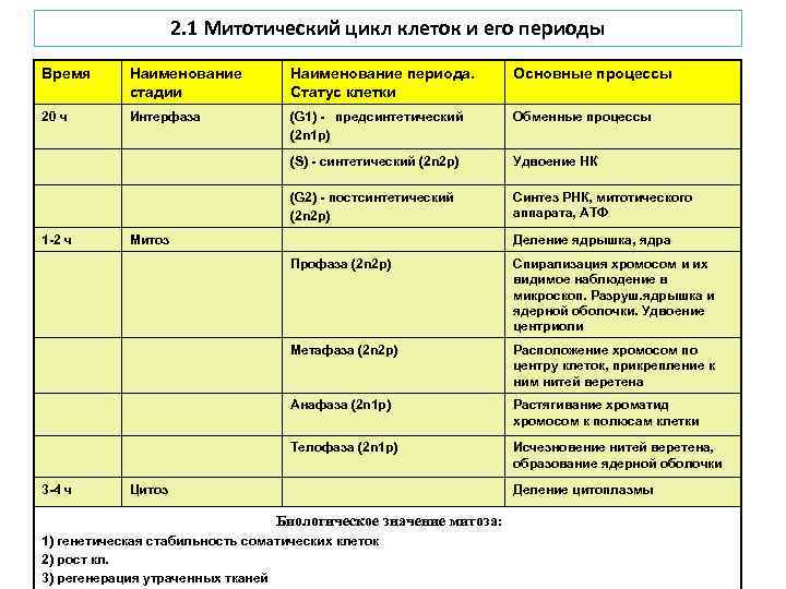 Жизненные циклы клетки таблица 113 фото