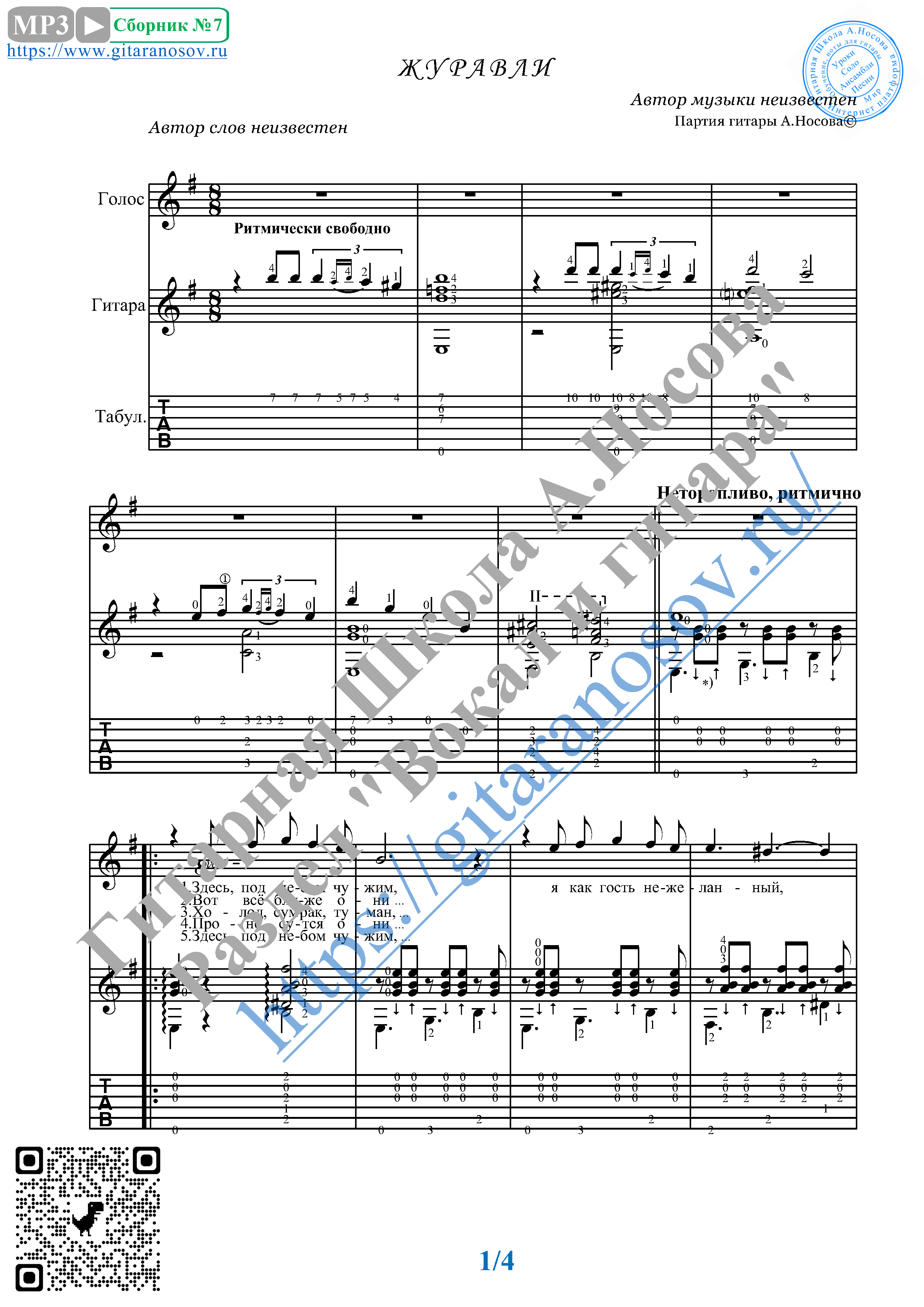 Журавли на гитаре для начинающих