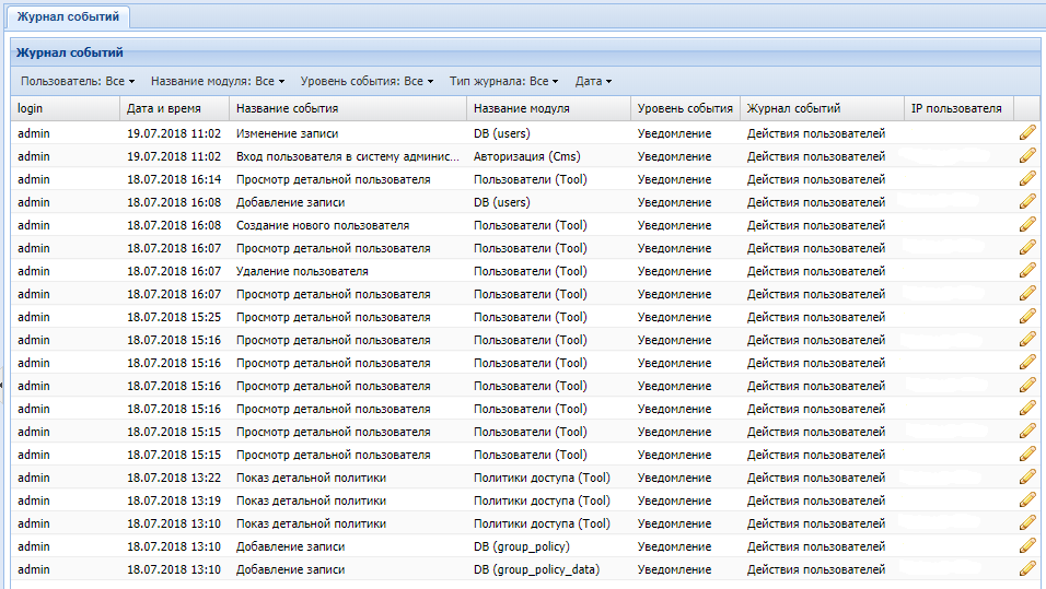 Журнал пользователя входа