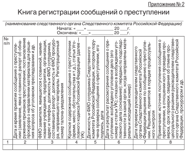 Журнал учета преступлений