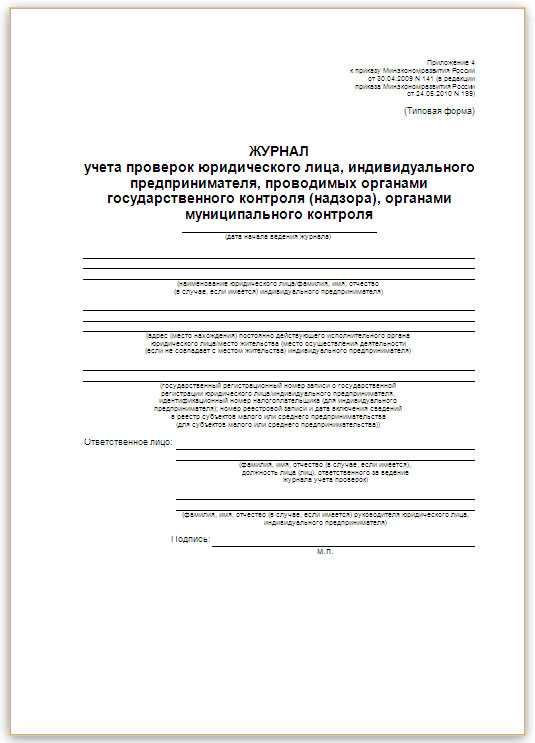 Журнал учета проверяющих
