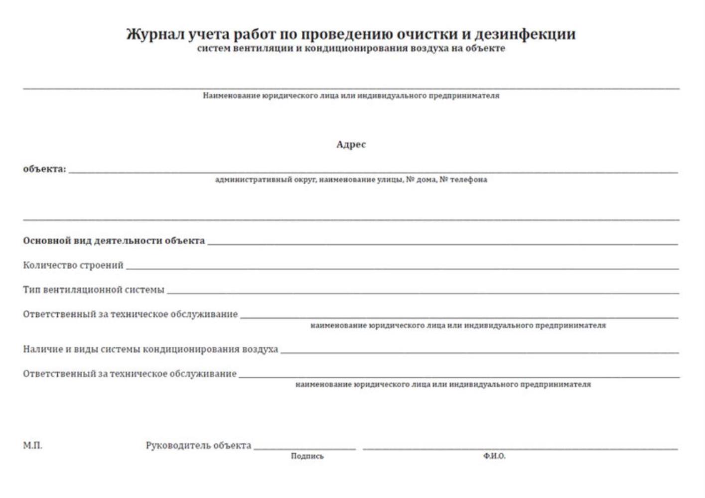 Журнал учета работ вентиляция 112 фото