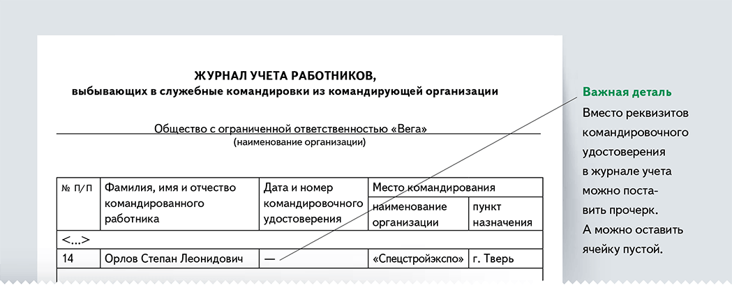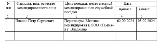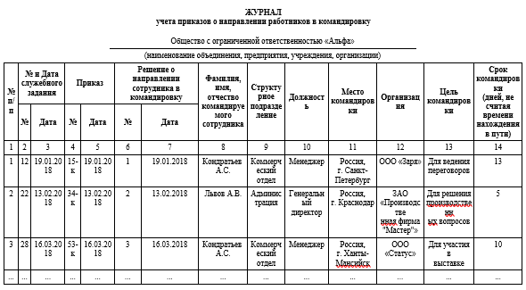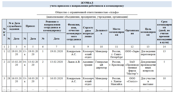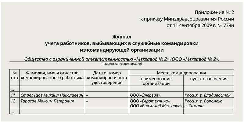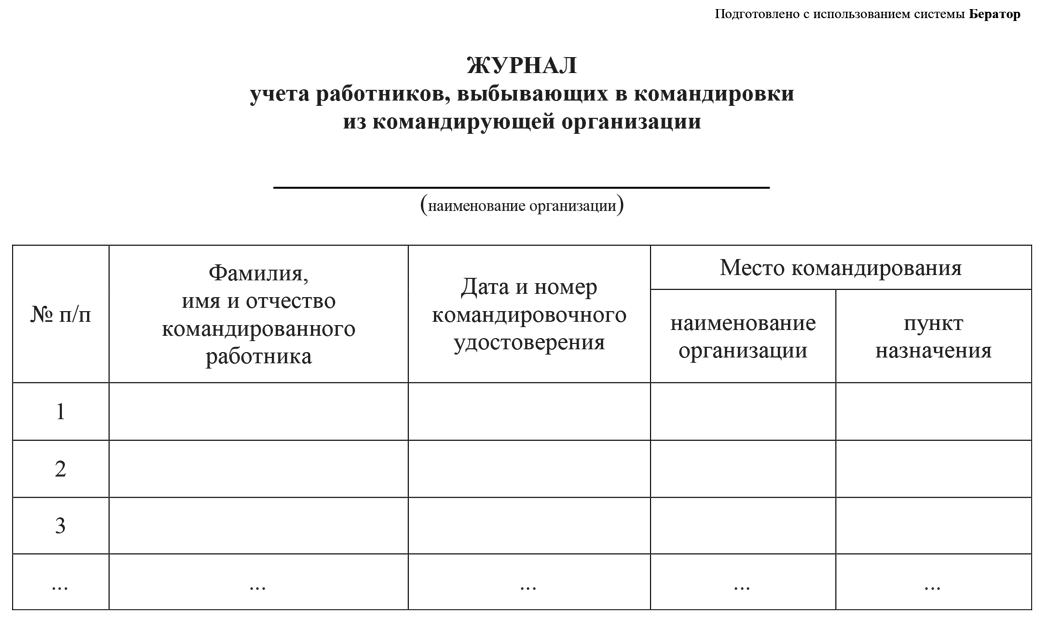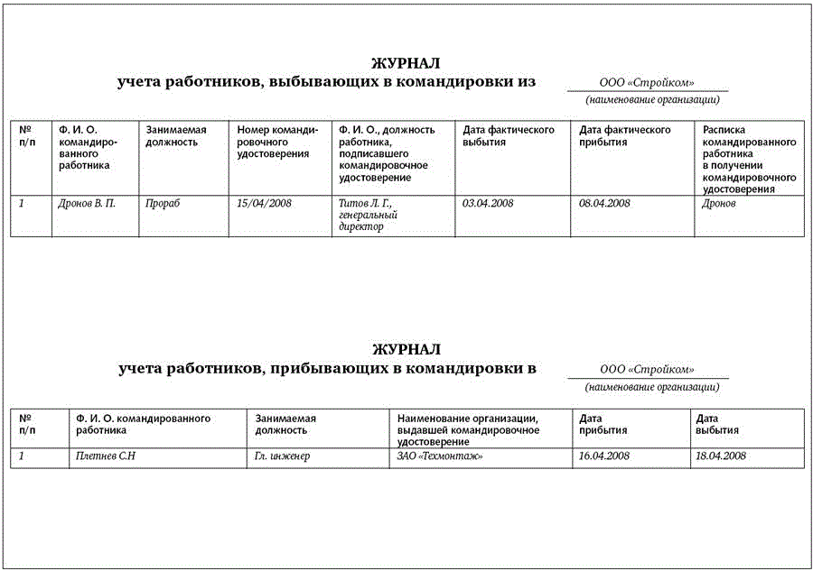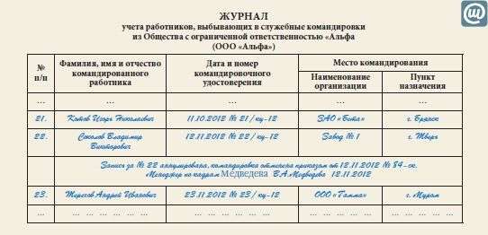 Журнал учета выбывших в командировку