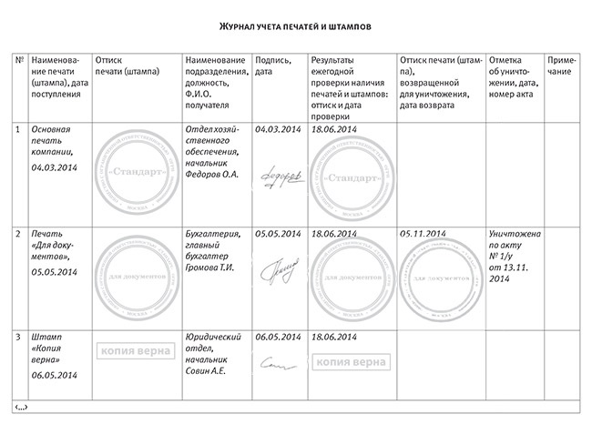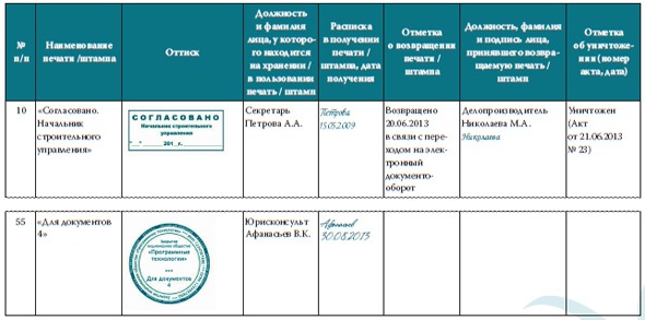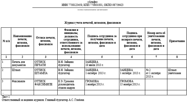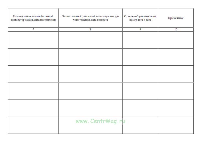 Журнал учета выдачи печатей