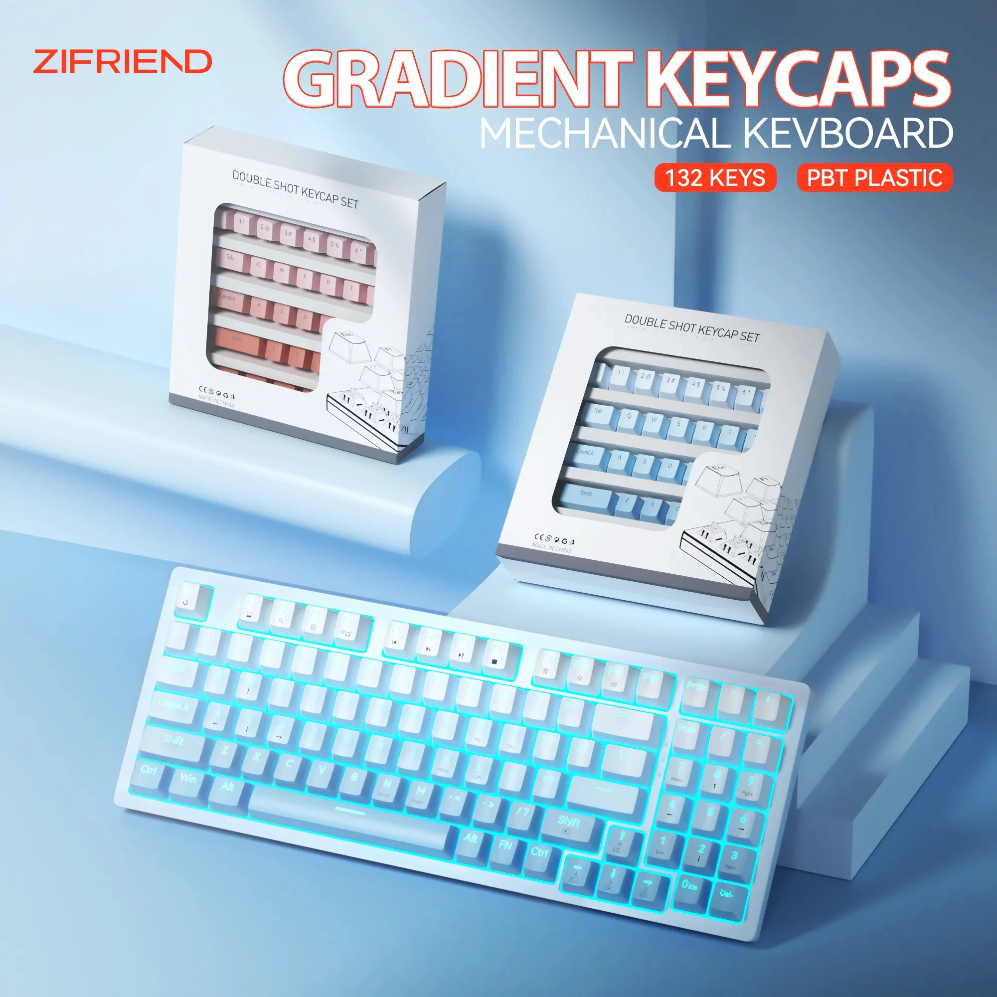GdopSwKmNHere you can buy ZIFRIEND 132pcs Keys Caps Set For DIY Mechanical Keyboard PBT Gradient Blue Keycaps CIY 60% Gaming Custom Keycap Top Side Print with free delivery to your post office.