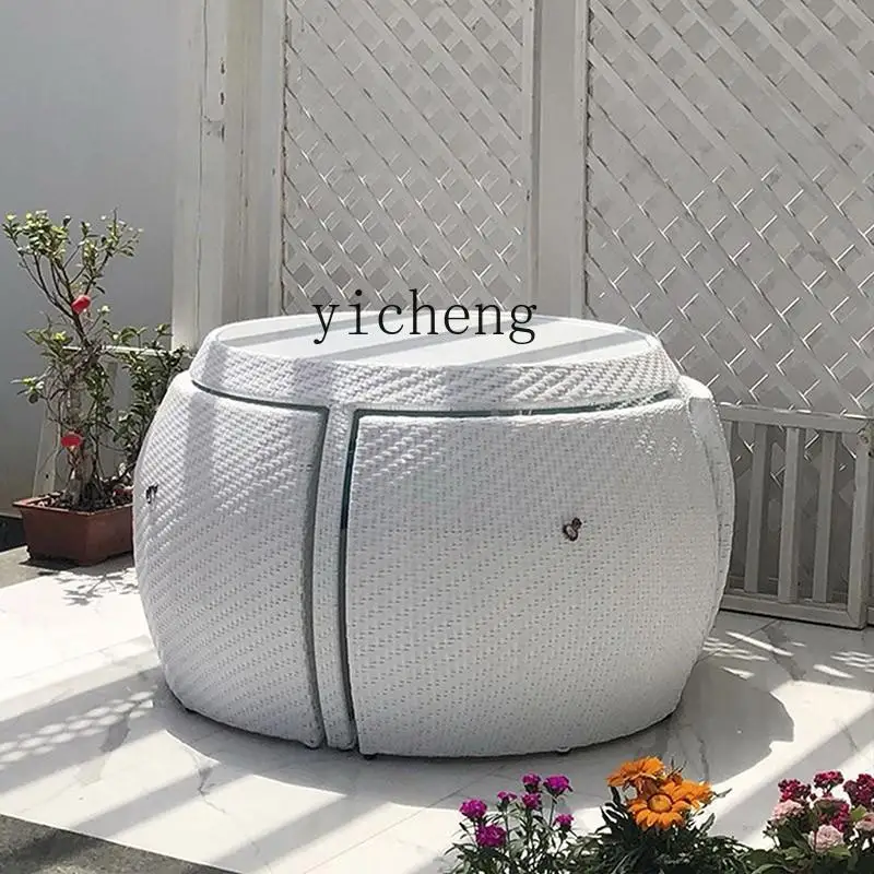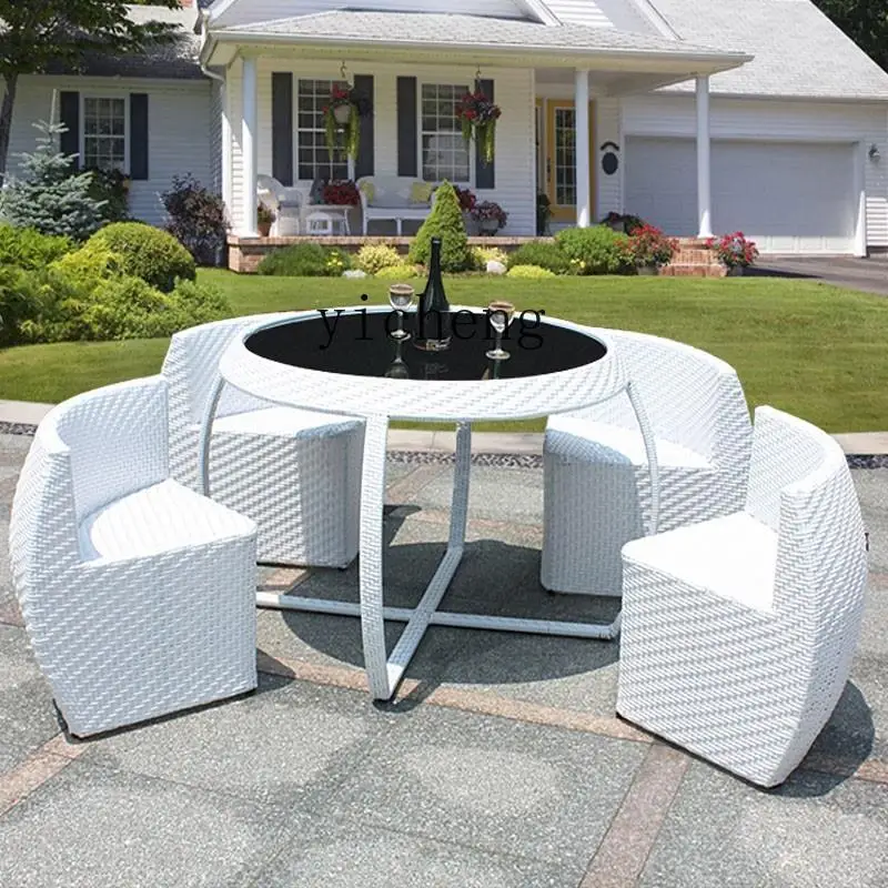 ZK Rattan Chair Five-Piece Set White Outdoor Waterproof Courtyard Creative Leisure Rattan Table and Chair Combination - Купить с бесплатной доставкой