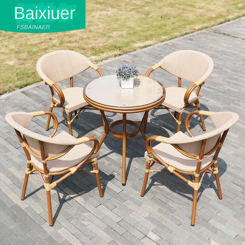 WRuyeijgHere you can buy ZL Rattan Chair Three-Piece Set Light Luxury Outdoor Terrace Bay Window Household Rattan Leisure Chair Combination with free delivery to your post office.