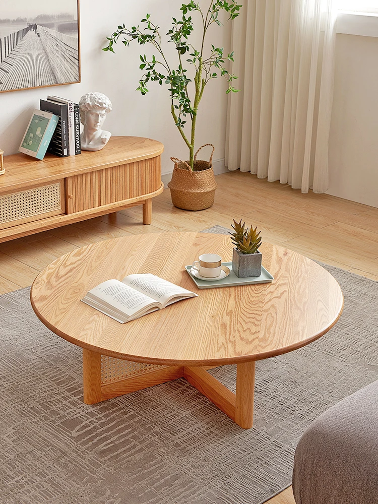 "ZL Solid Wood Rattan Tea Table Living Room Home Log round Low Table" * Buy Now With Free Shipping Just For $398