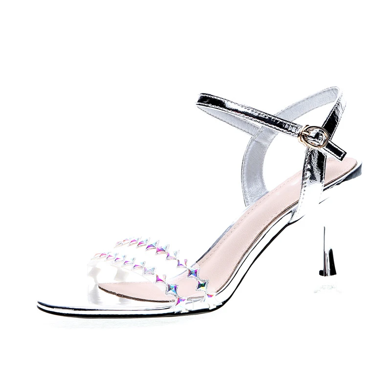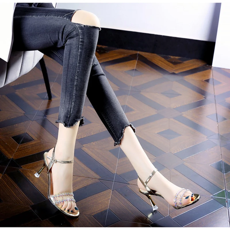ZOOKERLIN Open Toe Rhinestone Transparent PVC Women's Sandals Stiletto High Heel Solid Color Buckle Party Shoes For Woman Summer - Купить с бесплатной доставкой