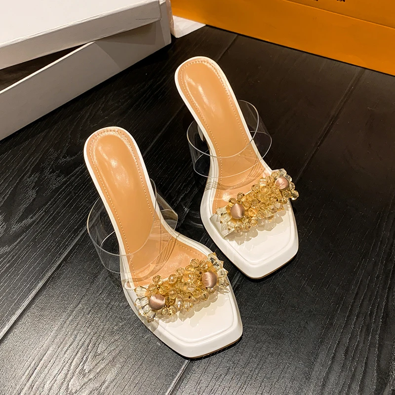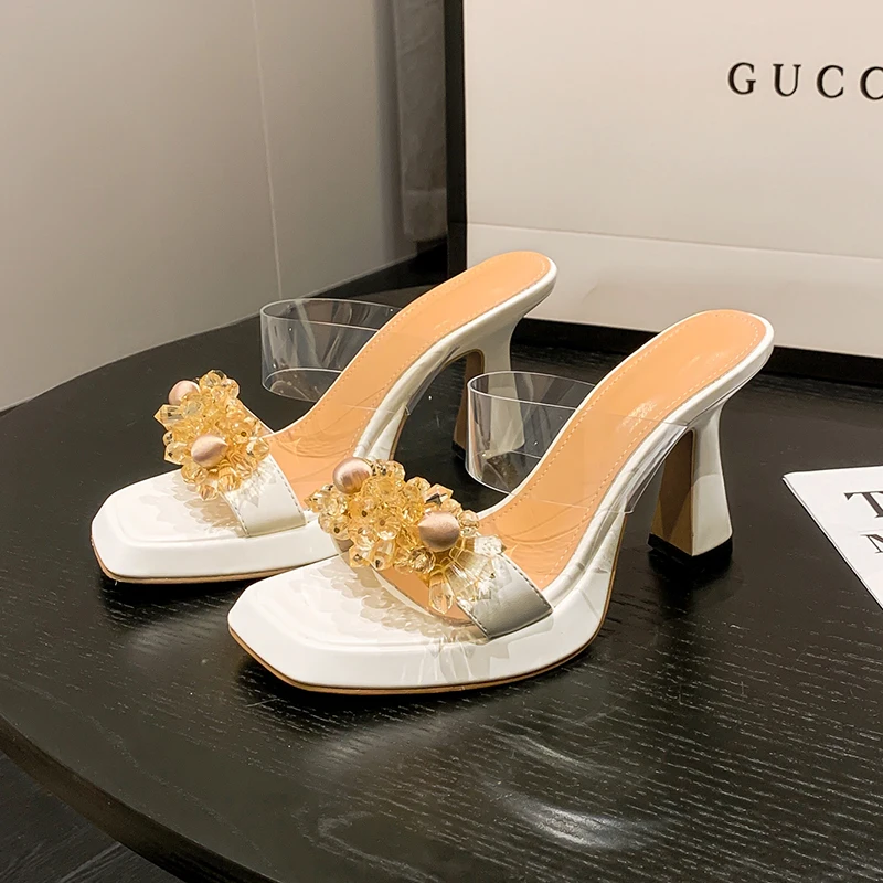 drglzsfeMHere you can buy ZOOKERLIN Square Toe Rhinestone Flower Transparent PVC Women's Slippers Thick High Heel Summer Ladies Party Shoes Slip On Slides with free delivery to your post office.