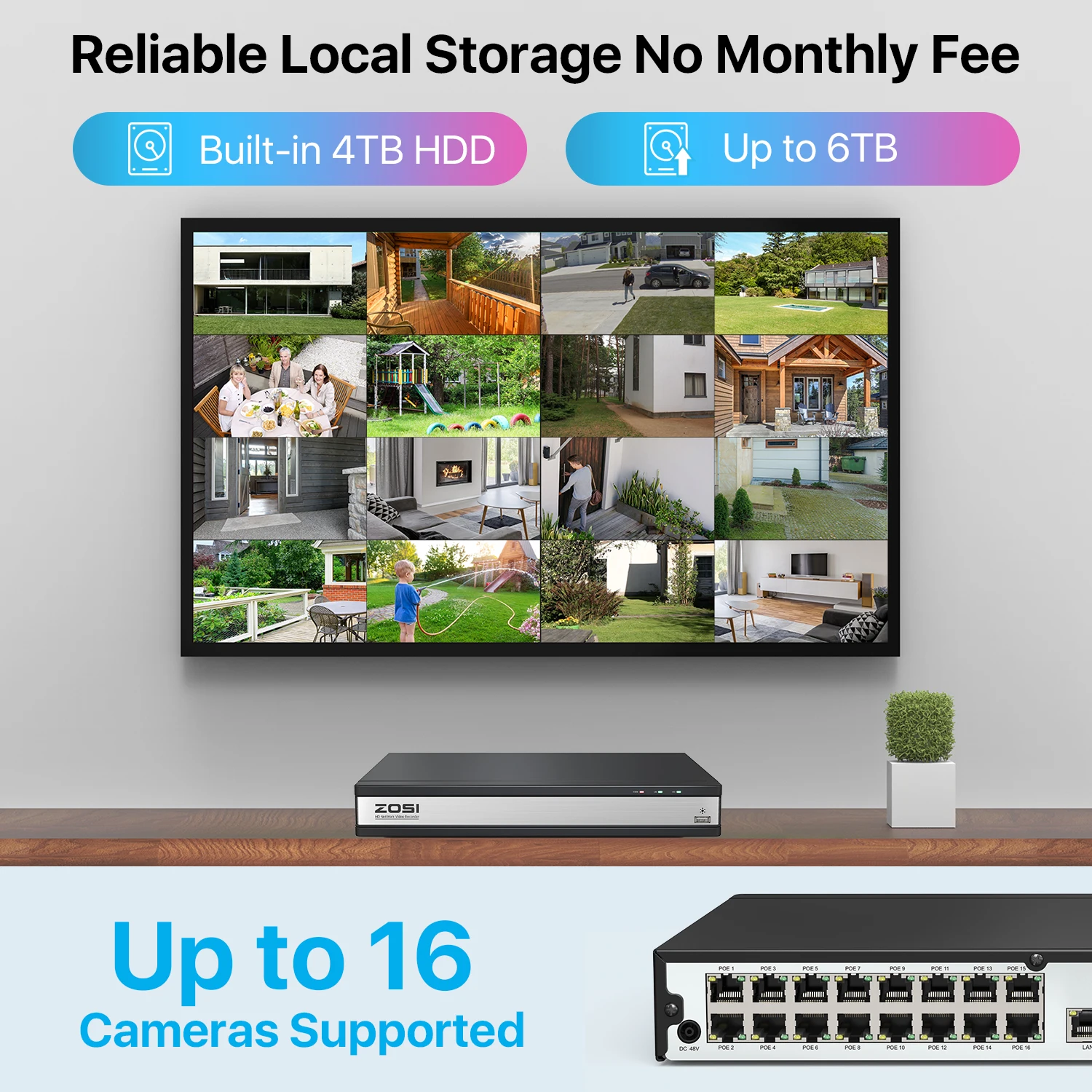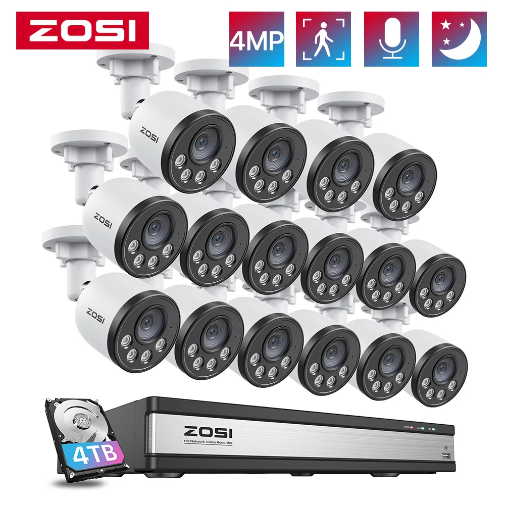 UNSYAphxxHere you can buy ZOSI POE Security Camera System 4K 16CH CCTV NVR 4MP HD Outdoor PoE IP Cameras AI Smart Human Detection Video Surveillance Kit with free delivery to your post office.