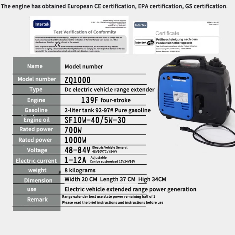 extmFJGEHere you can buy ZQ1000 Four-stroke Gasoline Generator 700W Electric Two-Wheeler Range Extender DC 48/60/72V Universal Portable Free Installation with free delivery to your post office.