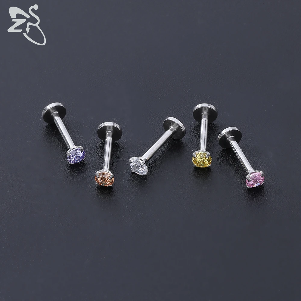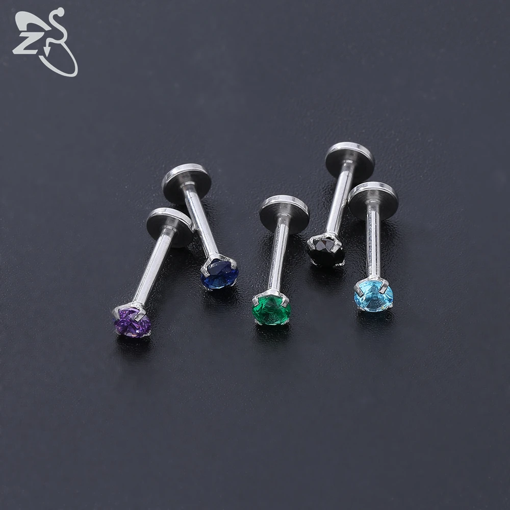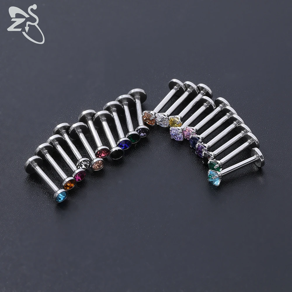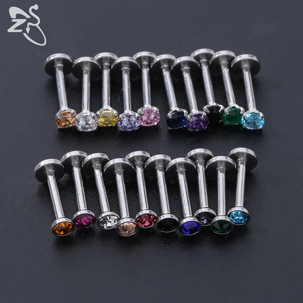 ZS 20 Pcs/lot 16G Crystal Zircon Labret Lip Rings Stainless Steel Internally Threaded Labret Piercings Unisex Cartilage Piercing - Купить с бесплатной доставкой