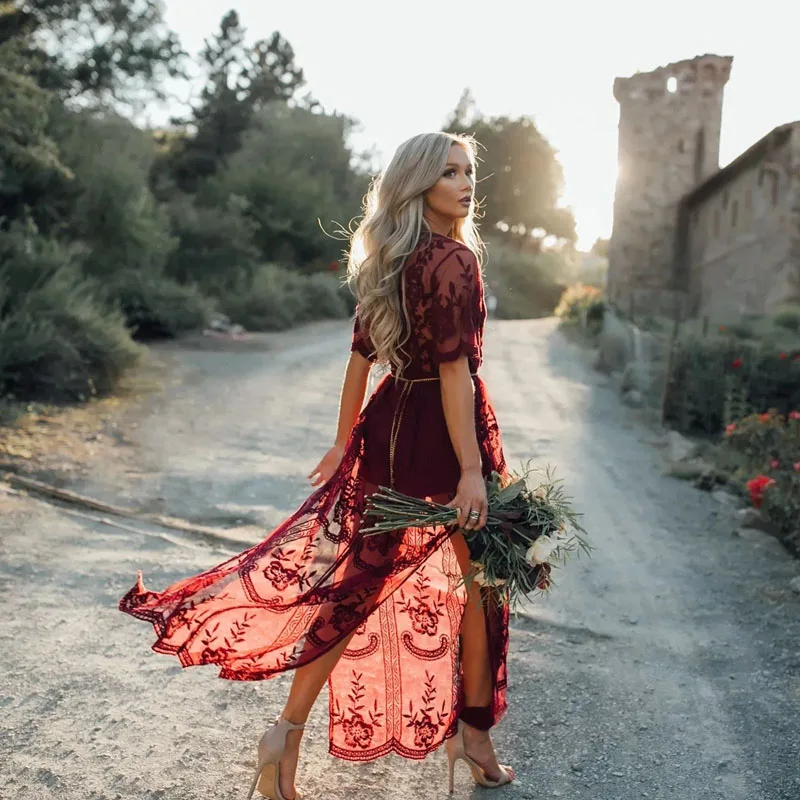 A Line Elegant Lace Wedding Bridal Gowns Bohemian Beach Wedding Dress 2022 Off The Shoulder V-Neck Appliqued Bride Dresses