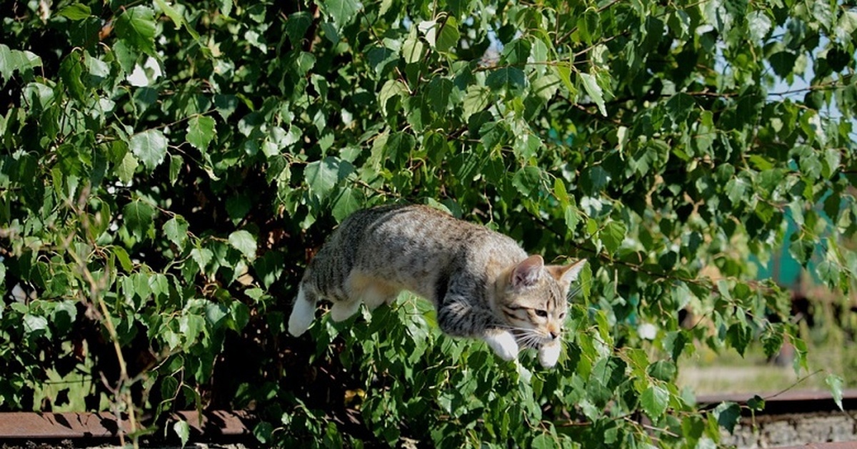 За деревней весело играла кошка