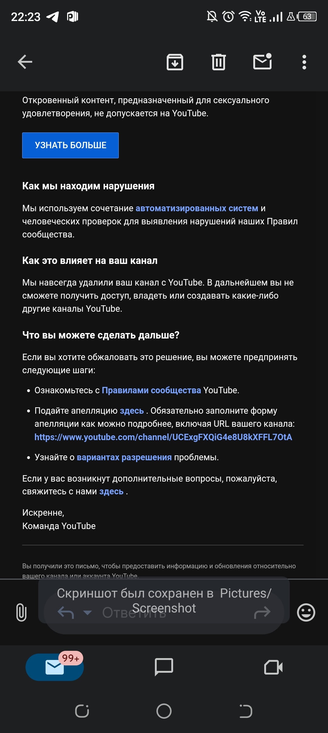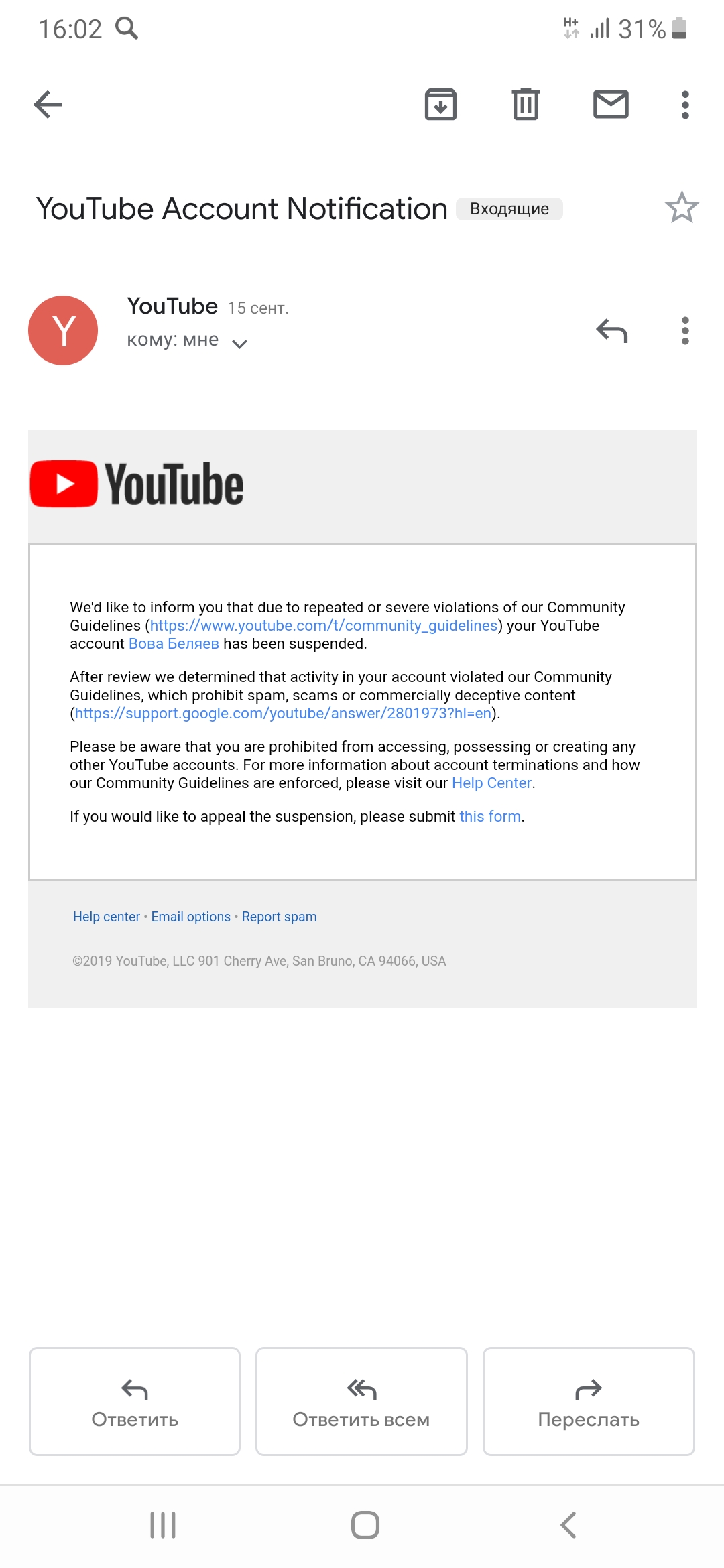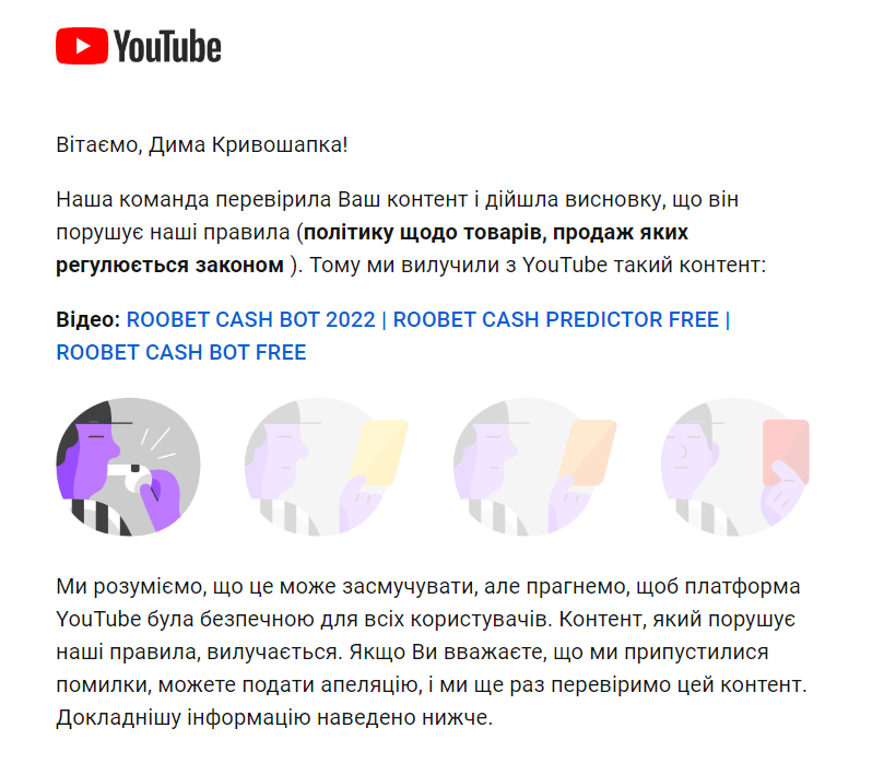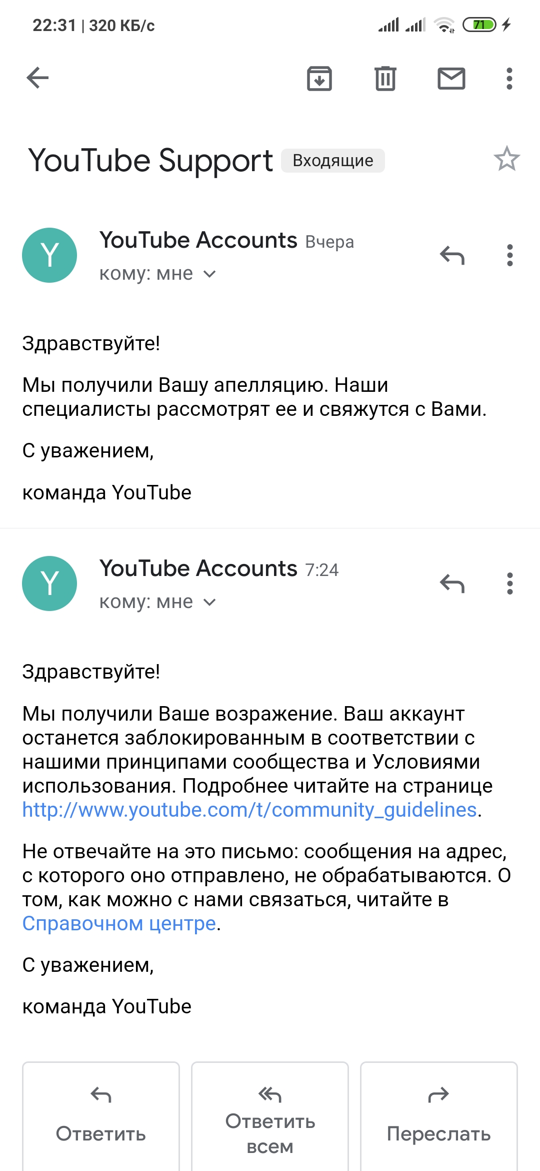 Забанили ютуб аккаунт