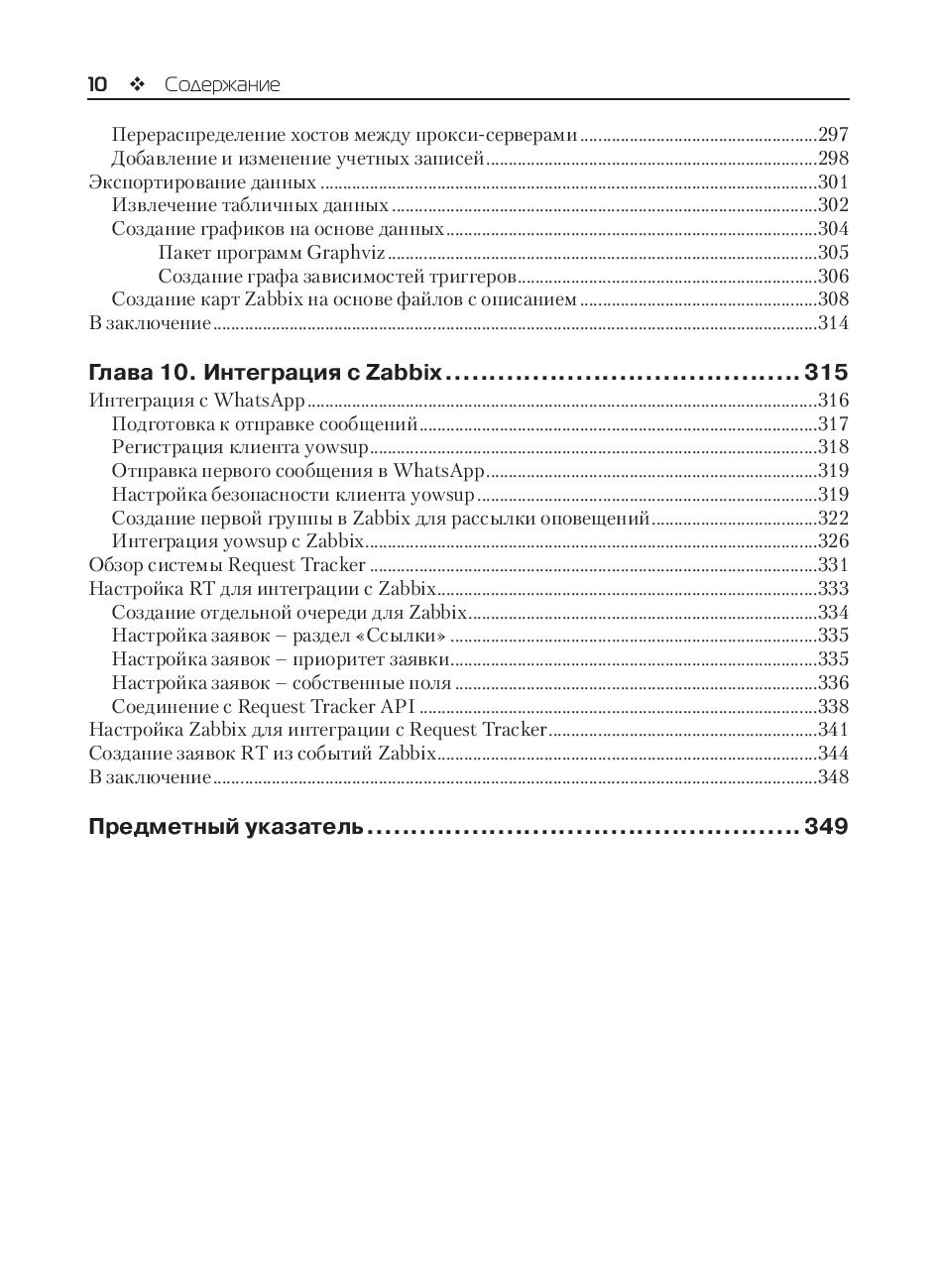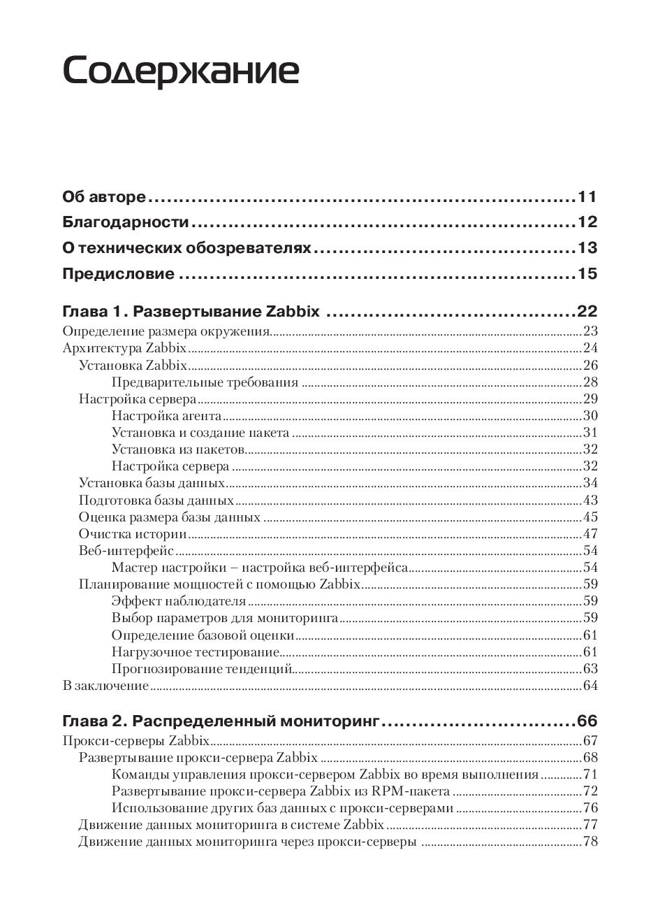 Это новое издание содержит все необходимые знания, которые могут понадобиться для принятия стратегических и практических решений, касающихся системы мониторинга Zabbix. Конфигурация, которую вы создадите с помощью этой книги, придется впору вашему окружению, как перчатка руке. Вы пройдете через начальный этап выбора правильного размера и конфигурации для вашей системы, узнаете, как осуществляется мониторинг, и научитесь создавать свои компоненты. Освоите приемы экспортирования данных и интеграции с другими системами.