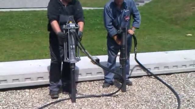 Забивание трубы отбойным молотком
