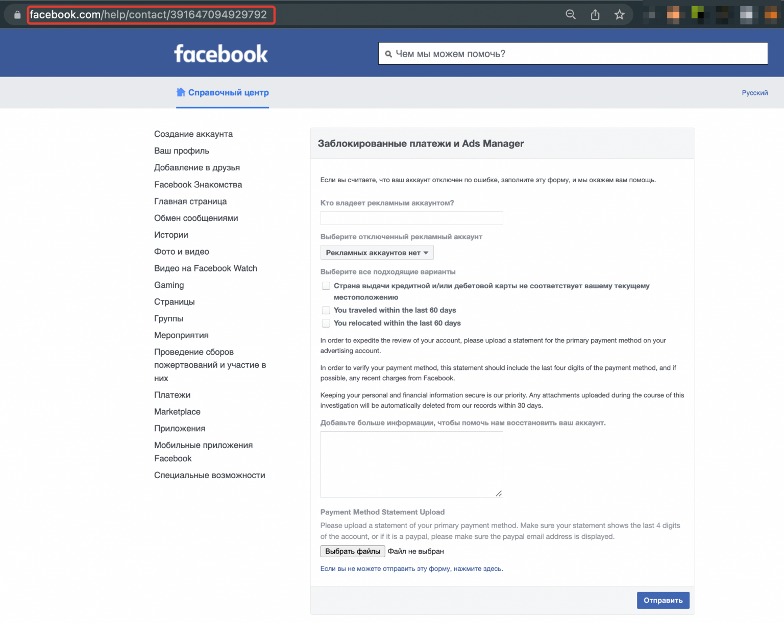 Заблокирован ли фейсбук