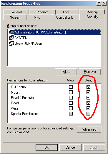 Заблокировать исполняемый файл