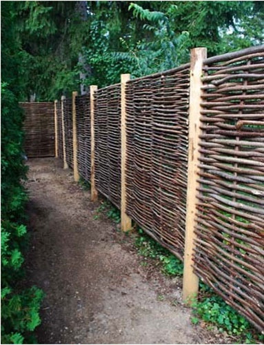 Деревянный забор под старину плетенка (на фото ниже можно рассмотреть более детально) очень необычен, сделать его своими руками совсем несложно, но, к сожалению, срок службы у него небольшой .