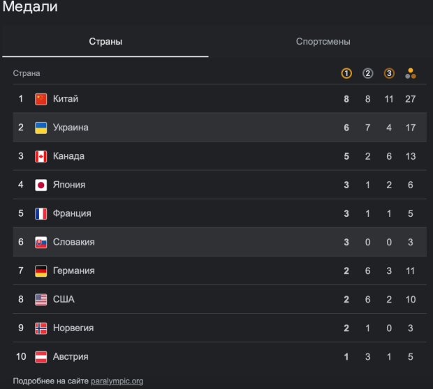 Зачет медалей параолимпиада 2025