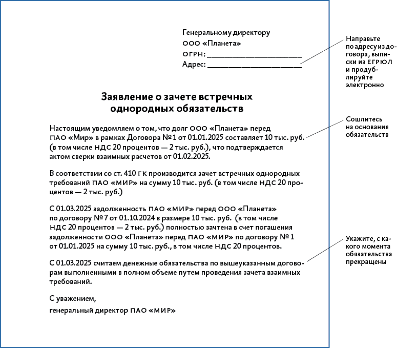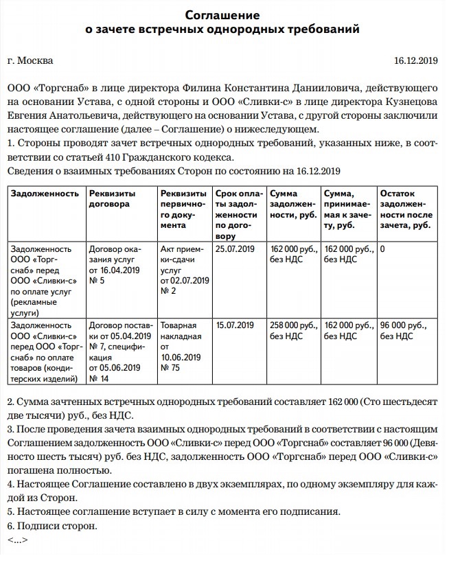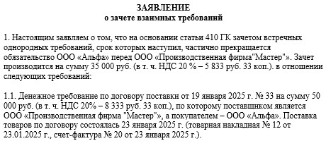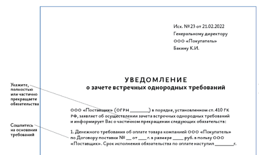 Зачет встречных денежных требований 115 фото
