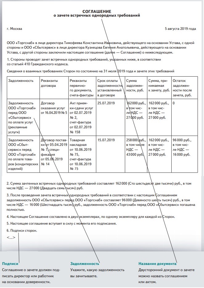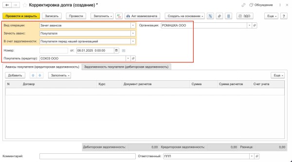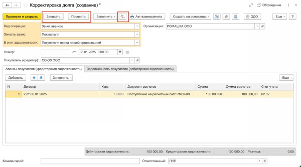 Зачет встречных требований в 1с