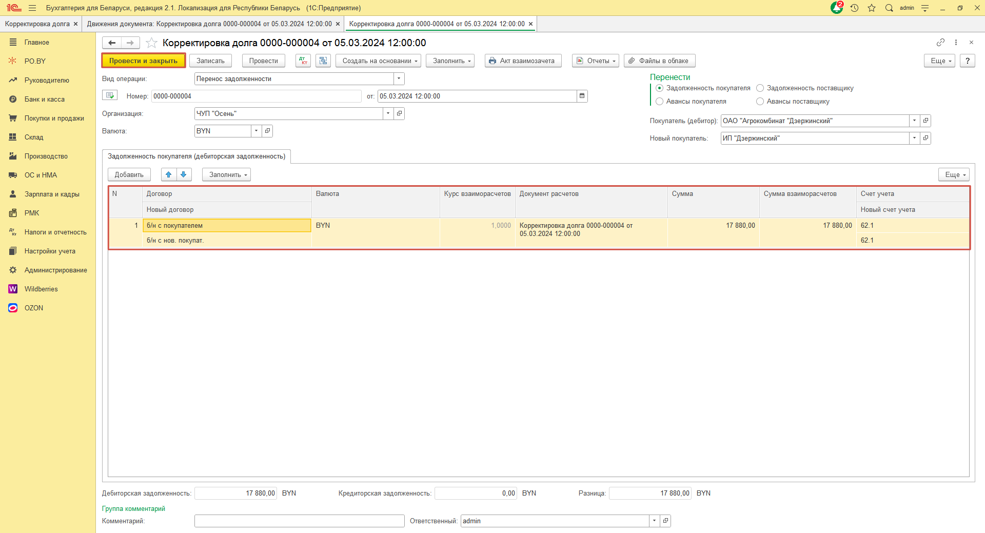 Зачет задолженности в 1с