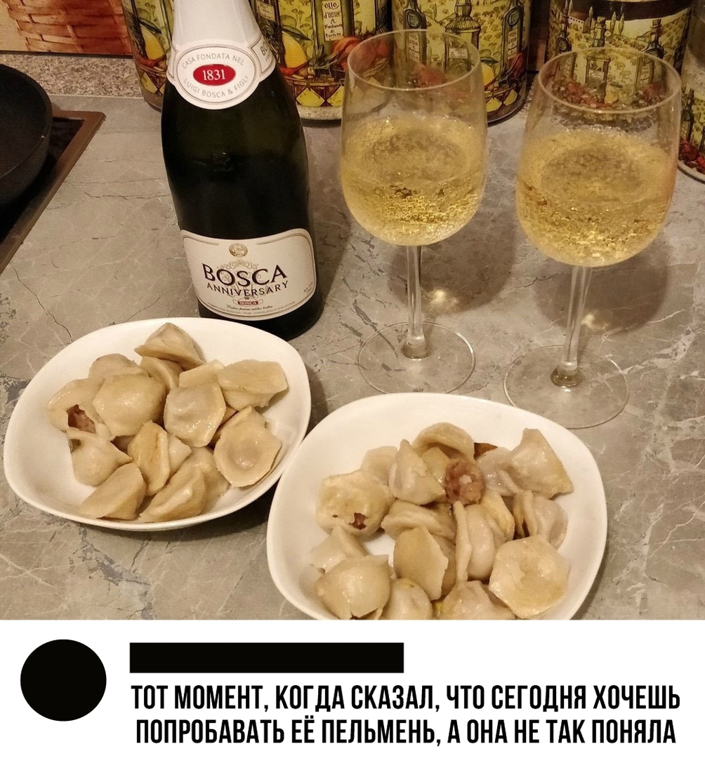 Зачетный . . . Невестка берет один пельмень, свекровь — два . Невестка два, свекровь пять . . . Остался один пельмень . Свекровь его съела — и подавилась .