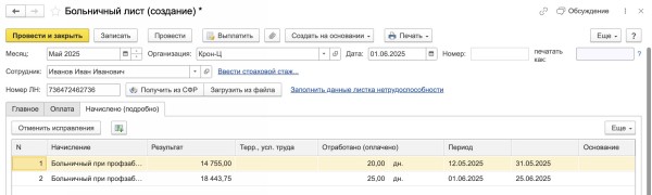 Зачисление больничных листов
