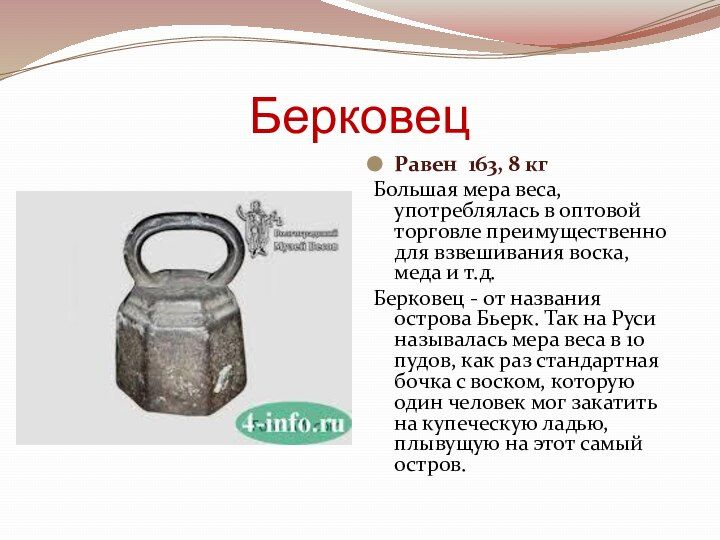Задача с пудом и берковец