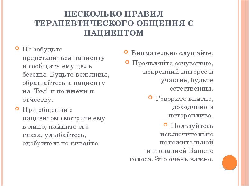 Задачи беседы с пациентом