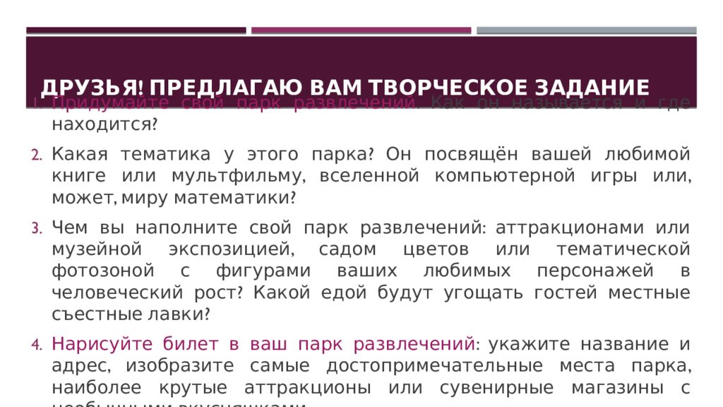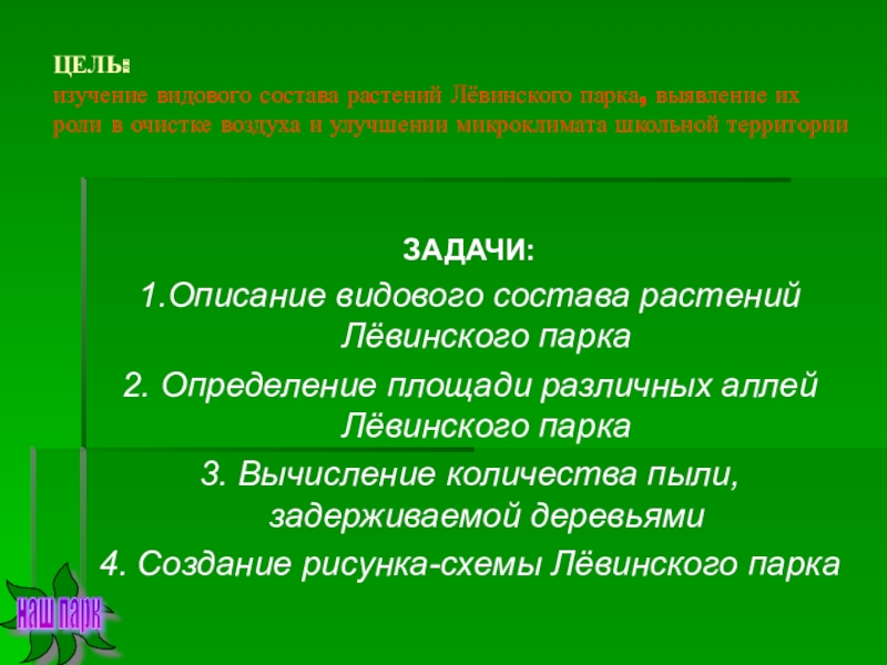 Задачи парка отдыха