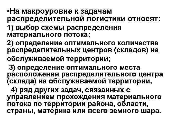 Задачи распределительного центра