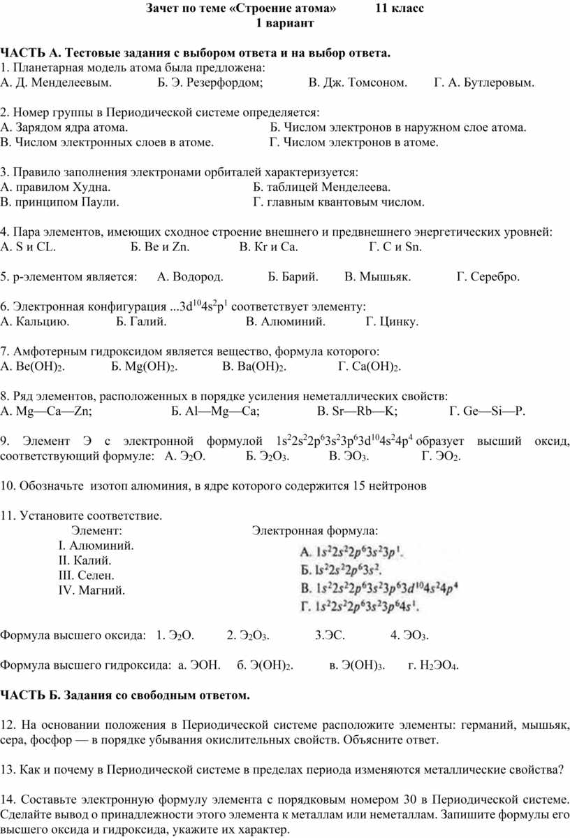 Задание по теме строение атома 11 класс 130 фото