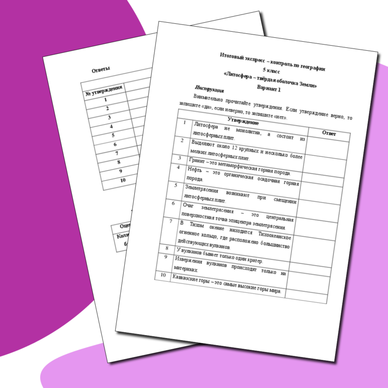 Задания по теме литосфера 5 класс