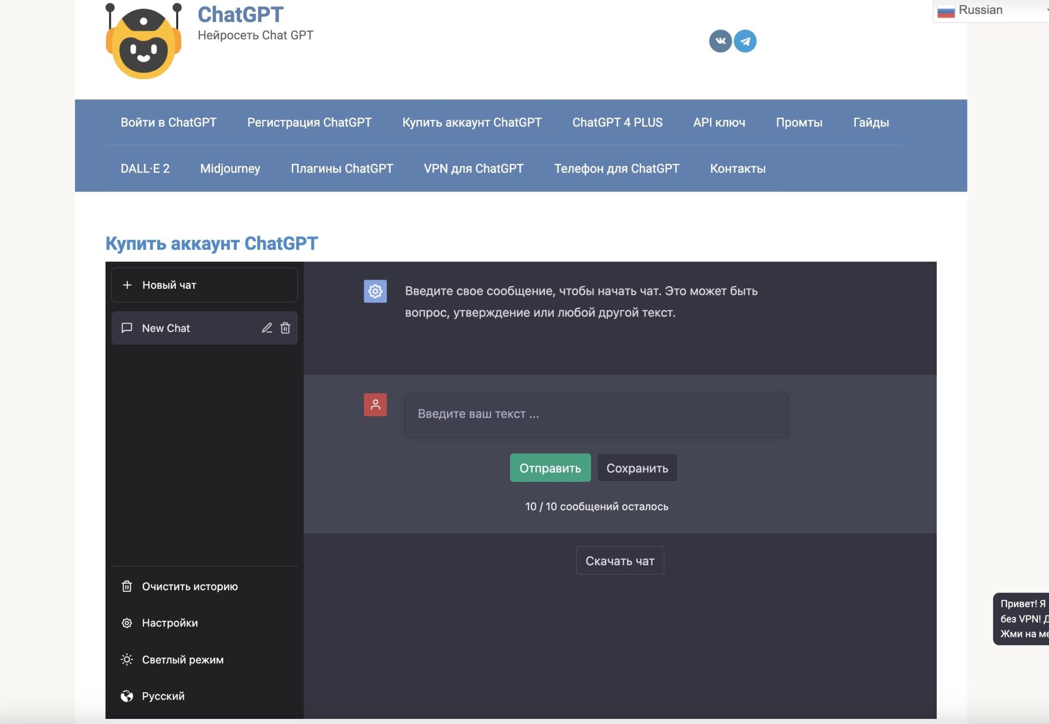 Задать вопрос чату gpt
