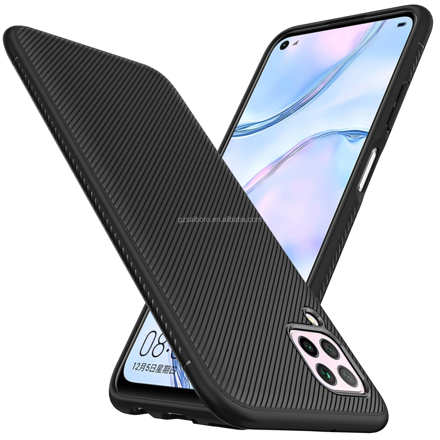 Задняя панель HUAWEI P40 lite дополнена металлическим бликами на защитном слое . Благодаря закругленным краям смартфон удобно лежит в руке .