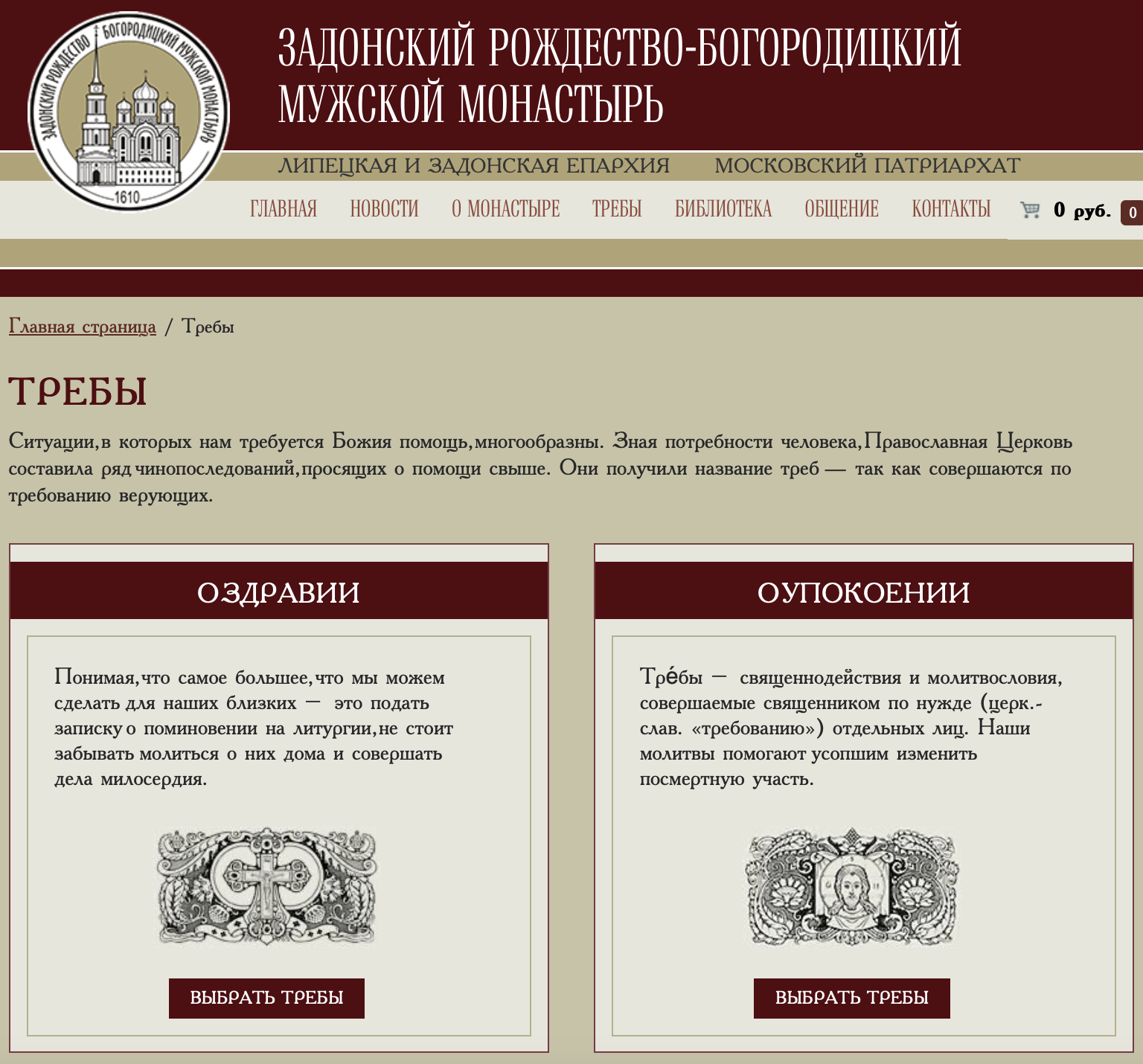 Требы в Задонском монастыре