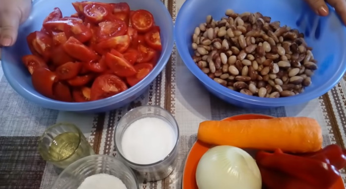 Заготовка на зиму из фасоли и помидоров