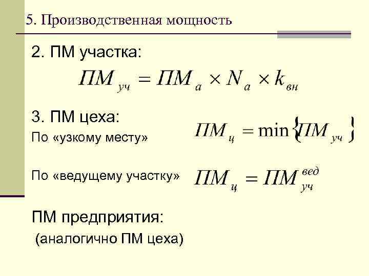 Загрузка мощностей формула