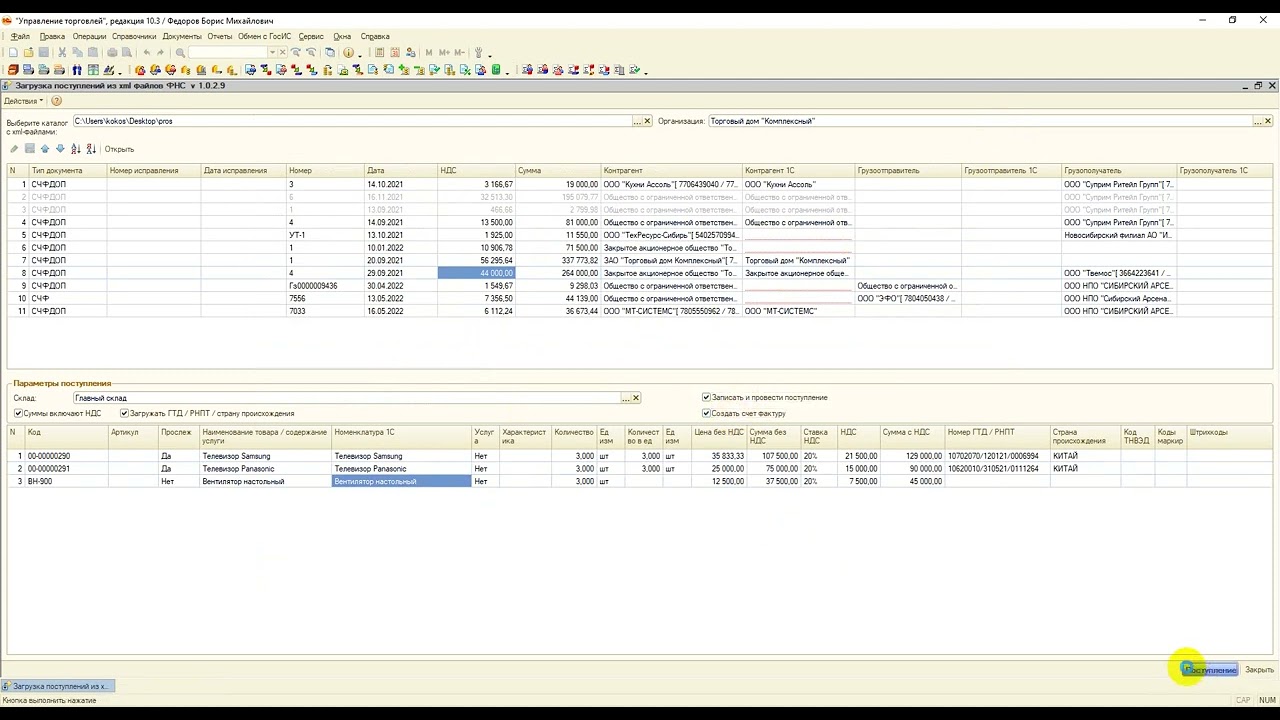 Загрузка остатков в 1с
